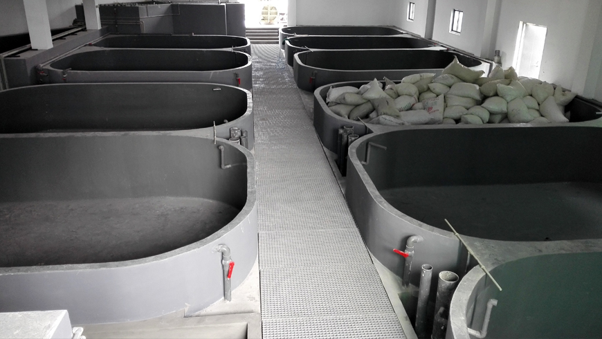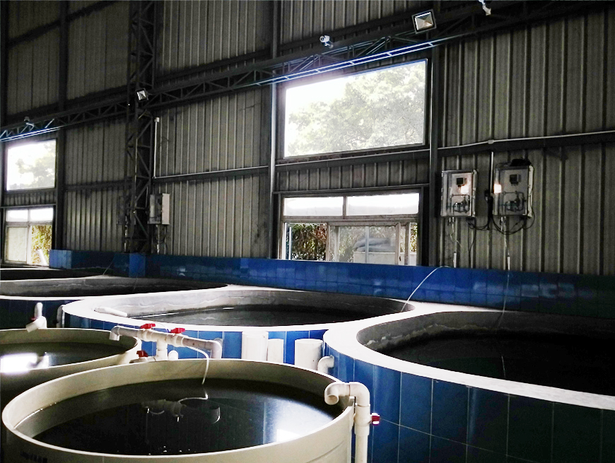 占地1000 m2,养殖水体500 m3十个养殖池 |